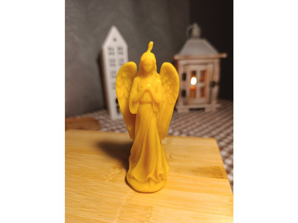 Dekorativní svíčka ve tvaru anděla s roztaženými křídly symbolizuje klid, ochranu a naději. Díky jemným detailům působí velmi něžně a může být nejen svíčkou, ale i krásnou dekorací nebo symbolem pro chvíle ztišení.