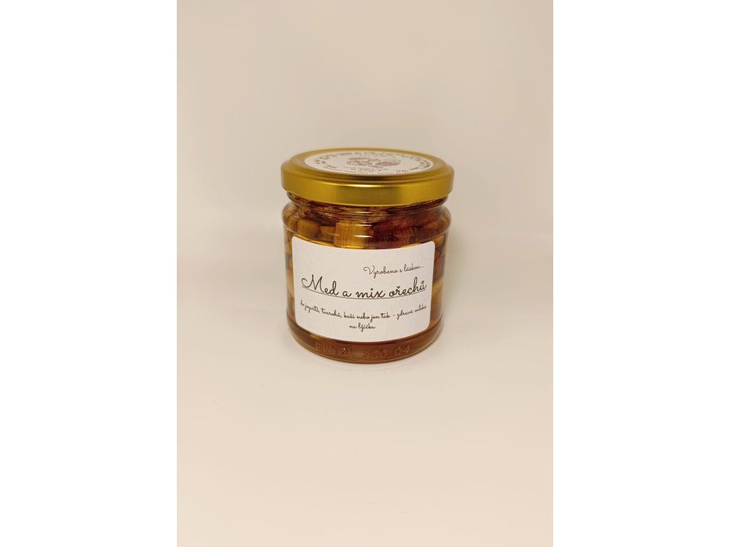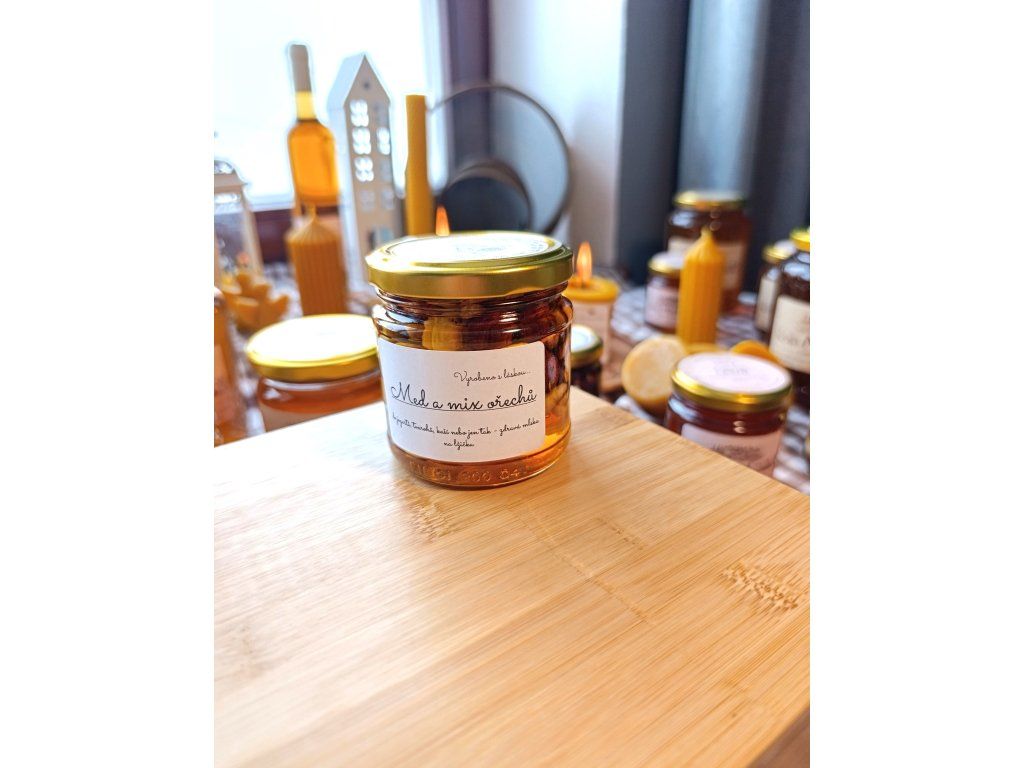 Složení: 60 % lesní med, 40 % mix ořechů (mandle, lískové, vlašské ořechy, kešu)