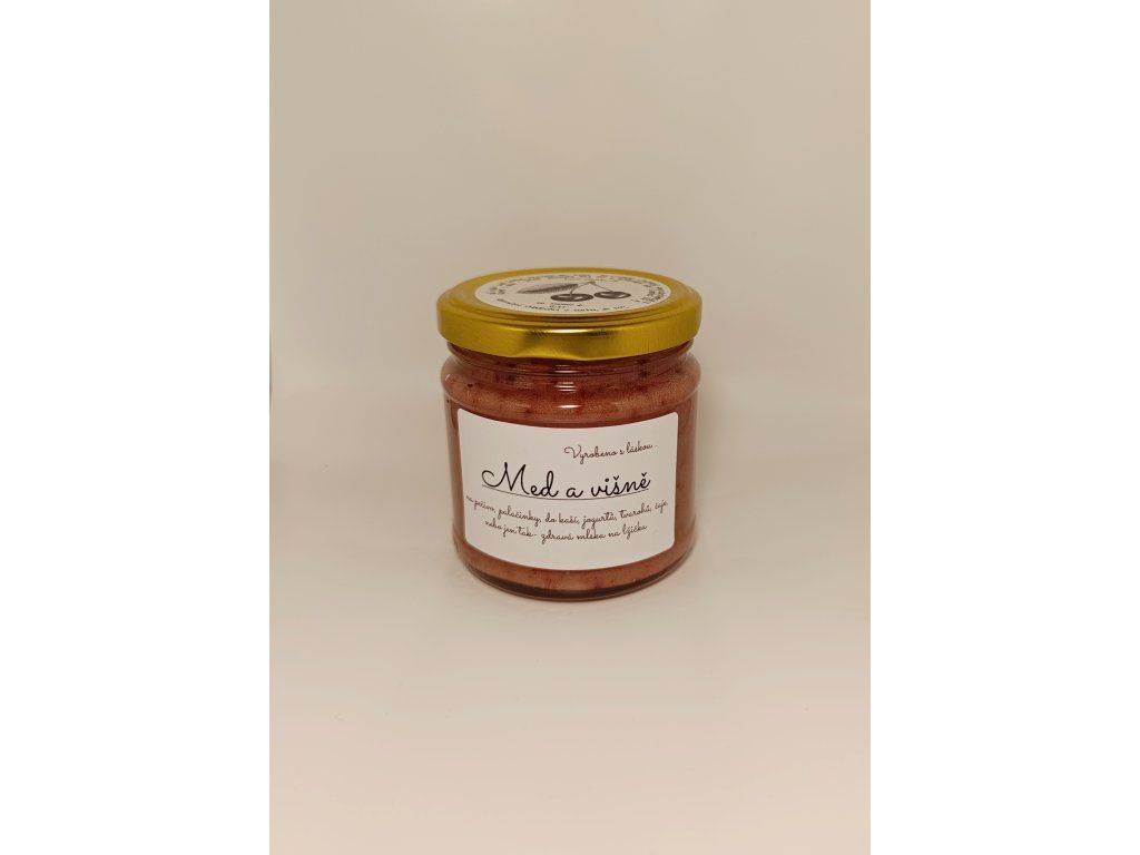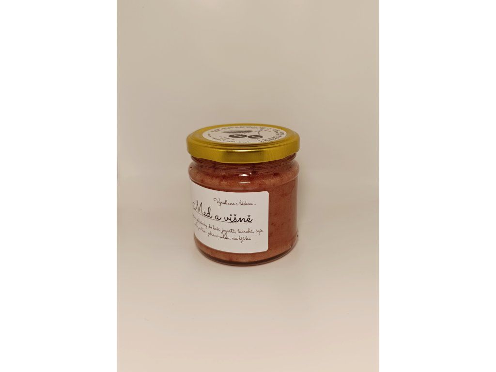 Med s višněmi vzniká spojením našeho pastovaného medu a lyofilizovaných višní sušených mrazem (95 % medu, 5 % ovoce). Díky šetrnému zpracování si višně zachovávají svou výraznou chuť i charakteristické aroma.