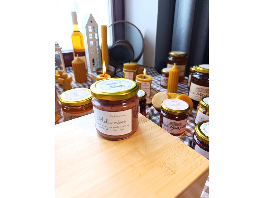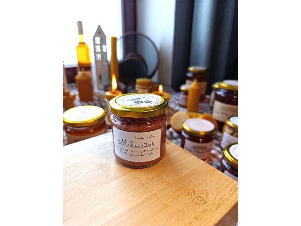 Lehká kyselinka višní přirozeně vyvažuje sladkost medu a vytváří harmonickou kombinaci, která připomíná chuť domácího višňového dezertu.