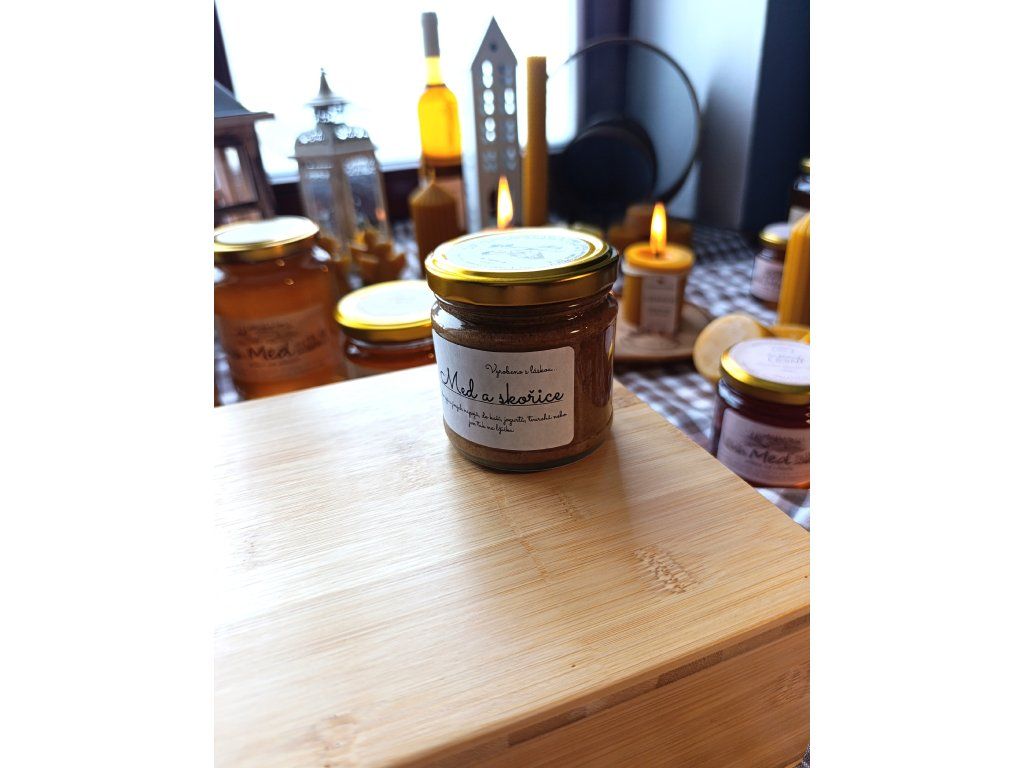 Med se skořicí vzniká spojením našeho pastovaného medu a kvalitní BIO skořice. Základem je 96 % medu doplněného o 4 % jemně mleté skořice, která mu dodává příjemně kořeněný tón a typickou hřejivou vůni.