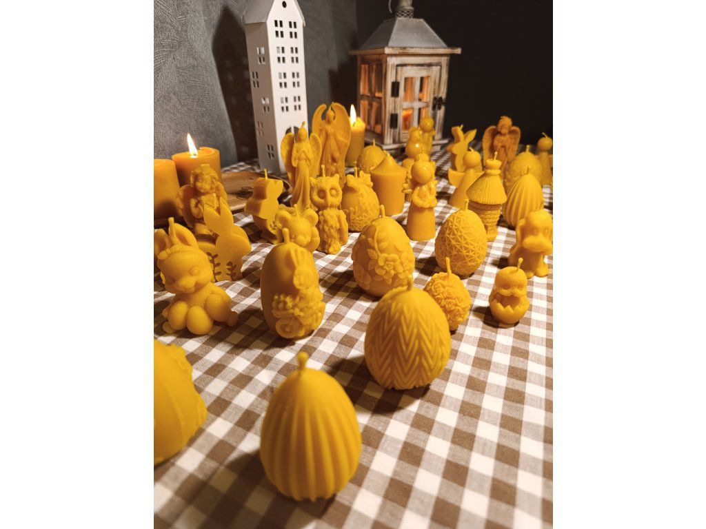Každý kus je ručně vyráběný, proto se mohou jednotlivé svíčky lehce lišit odstínem vosku nebo drobnými detaily.