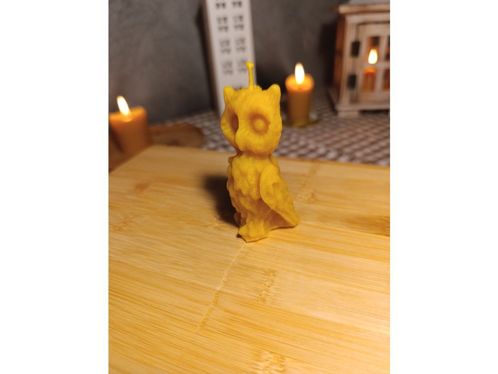 Roztomilá svíčka ve tvaru malé sovičky je vyrobena ze 100 % včelího vosku z našich úlů. Detailní reliéf peří a velké oči dodávají svíčce hravý a přátelský výraz.